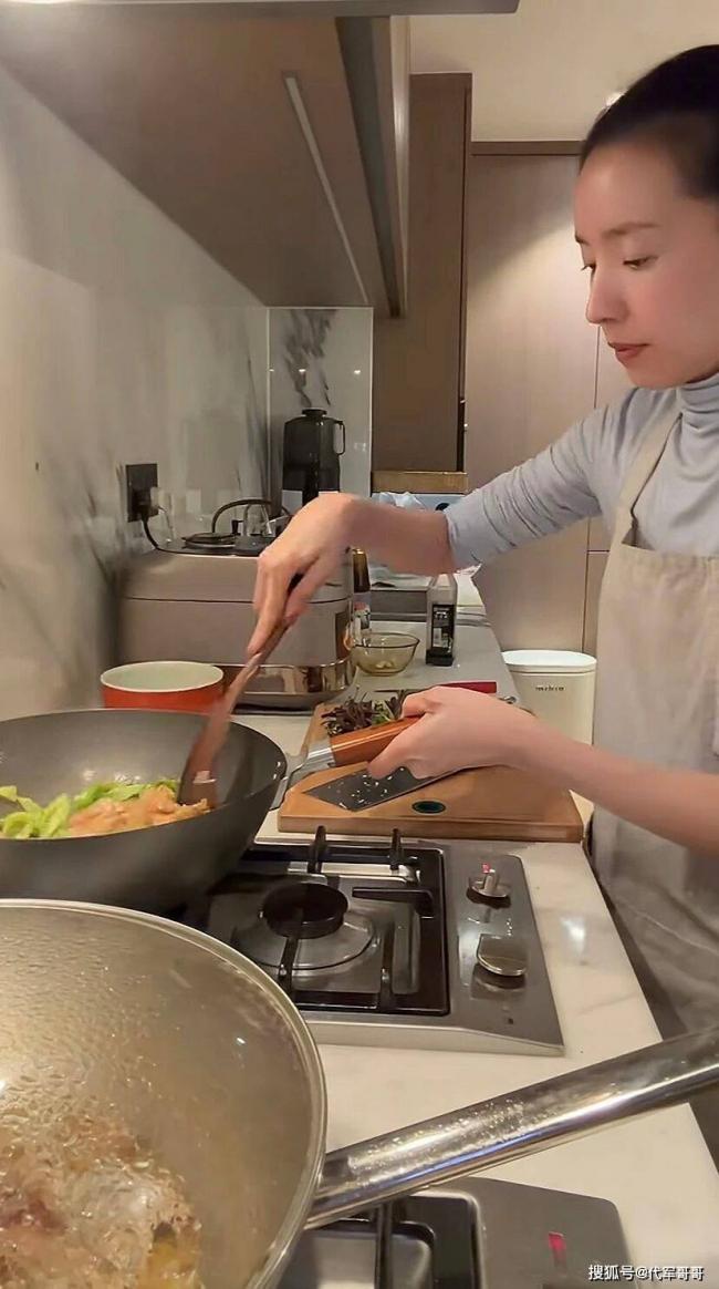 更令人意外的是豪宅里的 “无保姆模式”。从清晨六点起床准备早餐,到送顶顶上学后扎进早市挑拣新鲜食材,再到深夜洗衣晾晒、打扫房间,里里外外全由董洁亲力亲为。她的厨房是真正的 “烟火战场”:长长的操作台上,调味品整齐列队,两个炉灶同时开工 —— 一边小火慢炖给顶顶补营养的红烧牛肉,一边快手翻炒清爽青菜, multitasking 能力堪比专业厨师。对待饮食,她有着鲜明的 “双重标准”:自己午餐常是剩虾炒青菜简单凑合,晚餐却必定给顶顶备上红烧带鱼、清蒸螃蟹、时令青菜的丰盛组合,力求营养均衡。