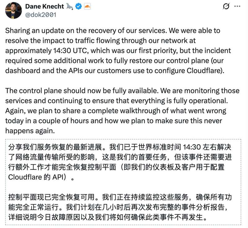 Cloudflare的CTO赶紧发了个申明:是我们的错误,立正挨打。