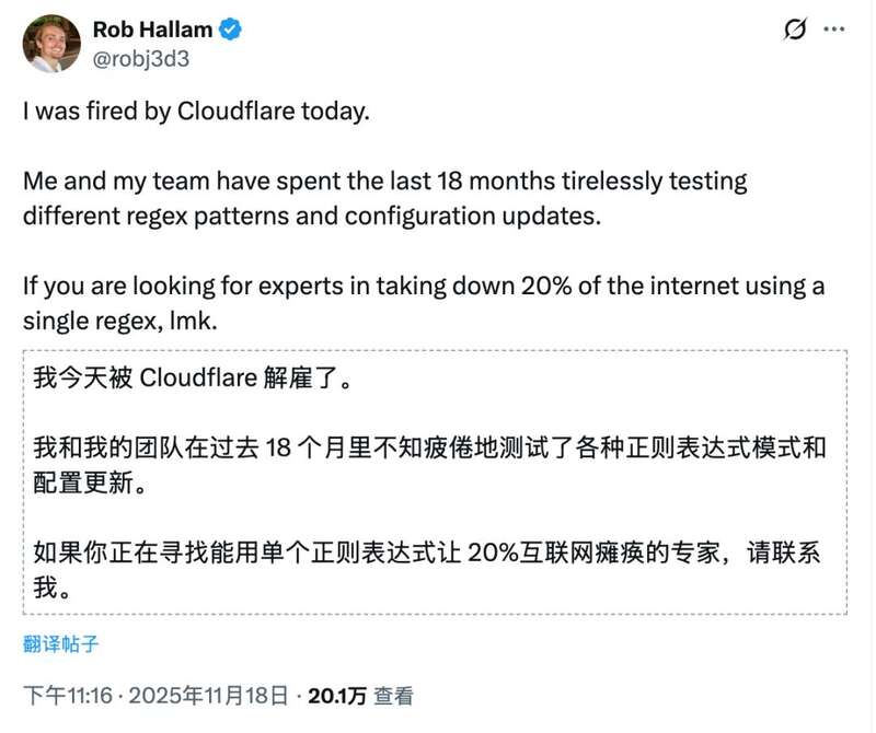 彩蛋:元凶被原地解雇X上这位名为Rob Hallam的哥们发了个帖子。