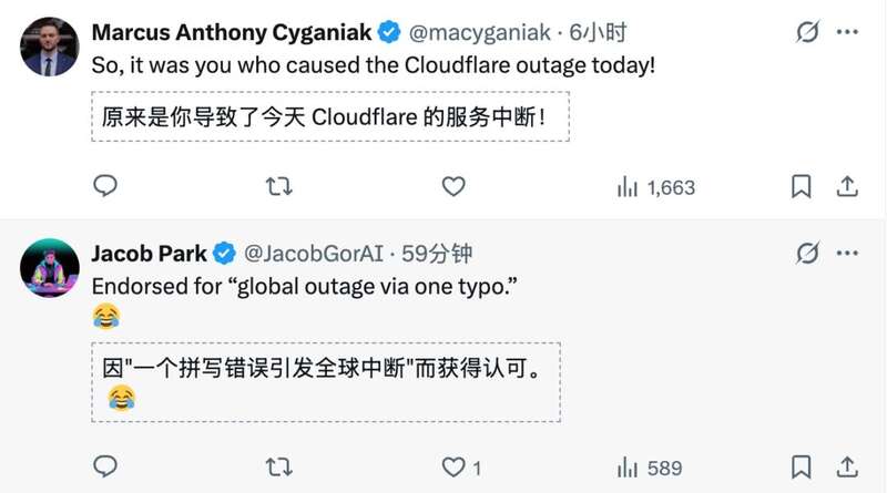 更令人深思的是,一些本用于监测网络故障的工具(如Downdetector)因本身也使用Cloudflare,甚至在事故中一同瘫痪—整个互联网生态对单一底层的依赖程度,由此可见一斑。