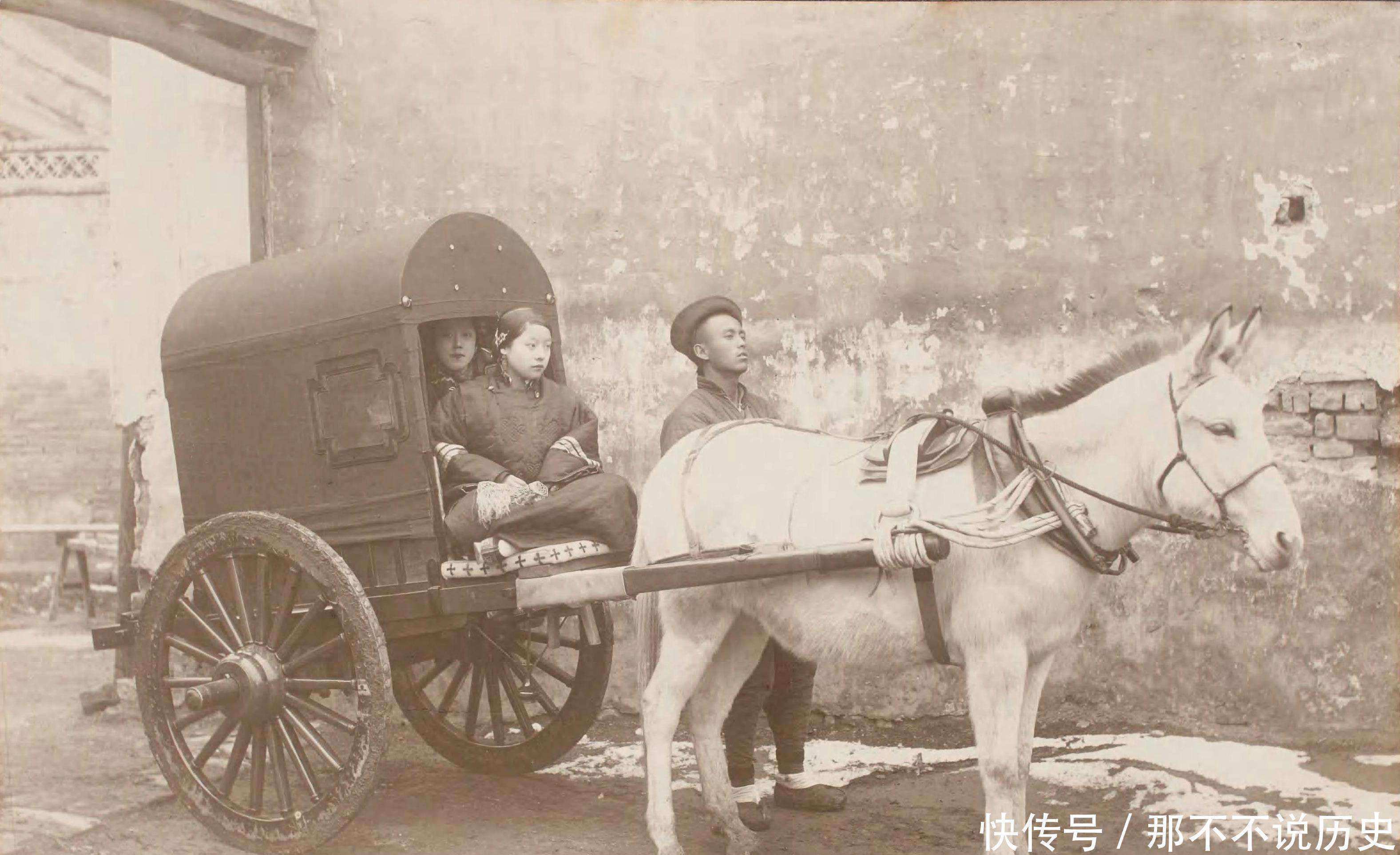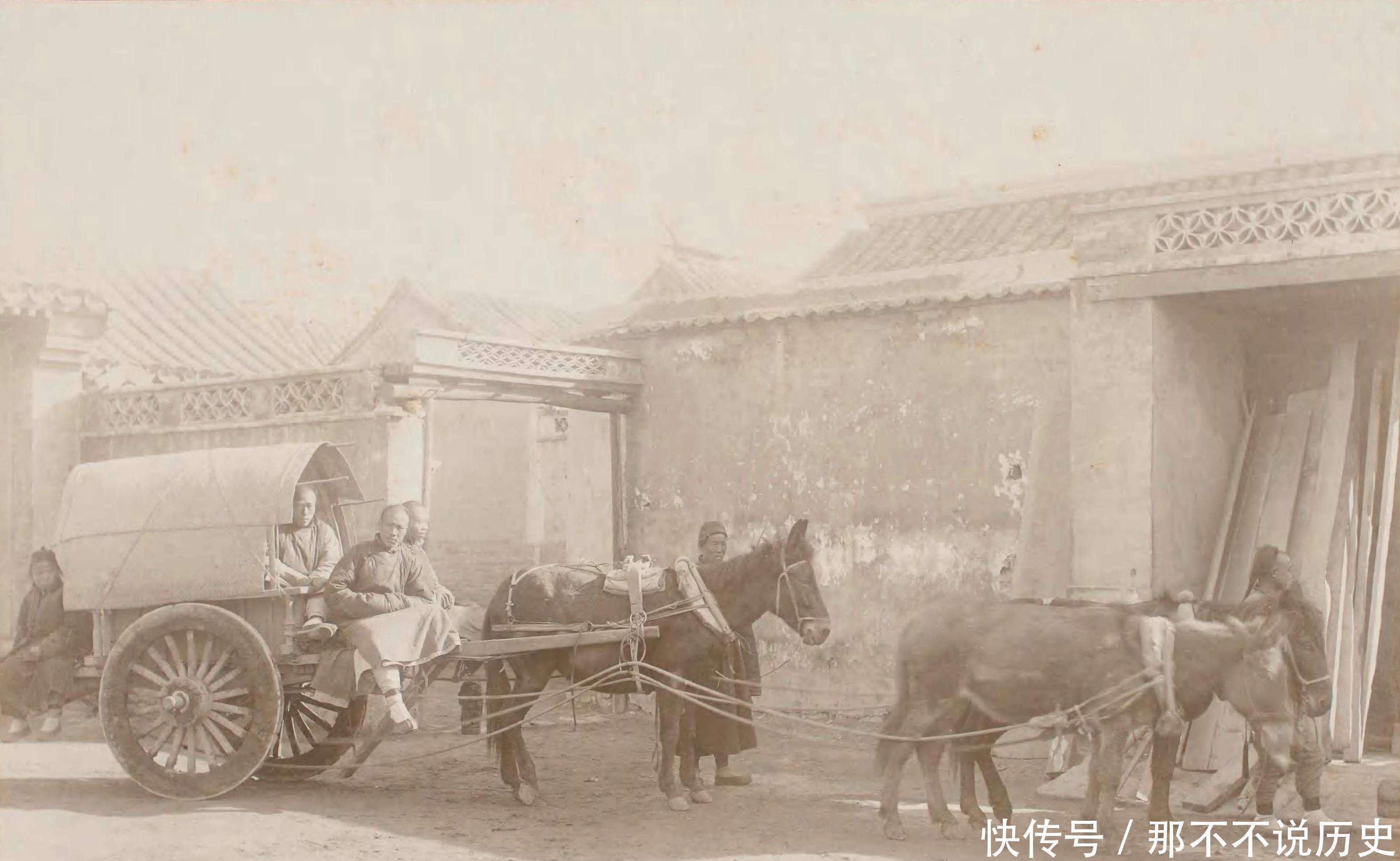 老照片一直是大家喜爱的宝贝,之前我们分享过一些关于老照片的文章,受到了不少读者的喜爱,所以今天又准备了一组1906年拍摄的老照片和大家分享。这些照片拍摄的时间是在清朝光绪三十二年,拍摄者可能是山本赞七郎。感谢这位拍摄者,让我们能够通过这些照片,看到100年前的大清朝生活。今天,我们就穿越回那个时代,看看当时的中国是什么样子的。那时候,大家的出行方式可和今天大不相同,没有如今满街的汽车,主要依赖牲口出行。下面这张照片展示的是一辆马车,前面有两匹马拉车,后面还有一匹马驾着车辕,车上架着一个棚子,可以遮风挡雨,适合长途旅行。