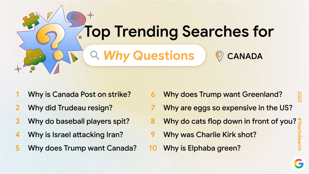 根据谷歌加拿大发布的年度“搜索年鉴”报告,这些是加拿大人在 2025 年向全球最受欢迎的搜索引擎提出的最常见问题之一。