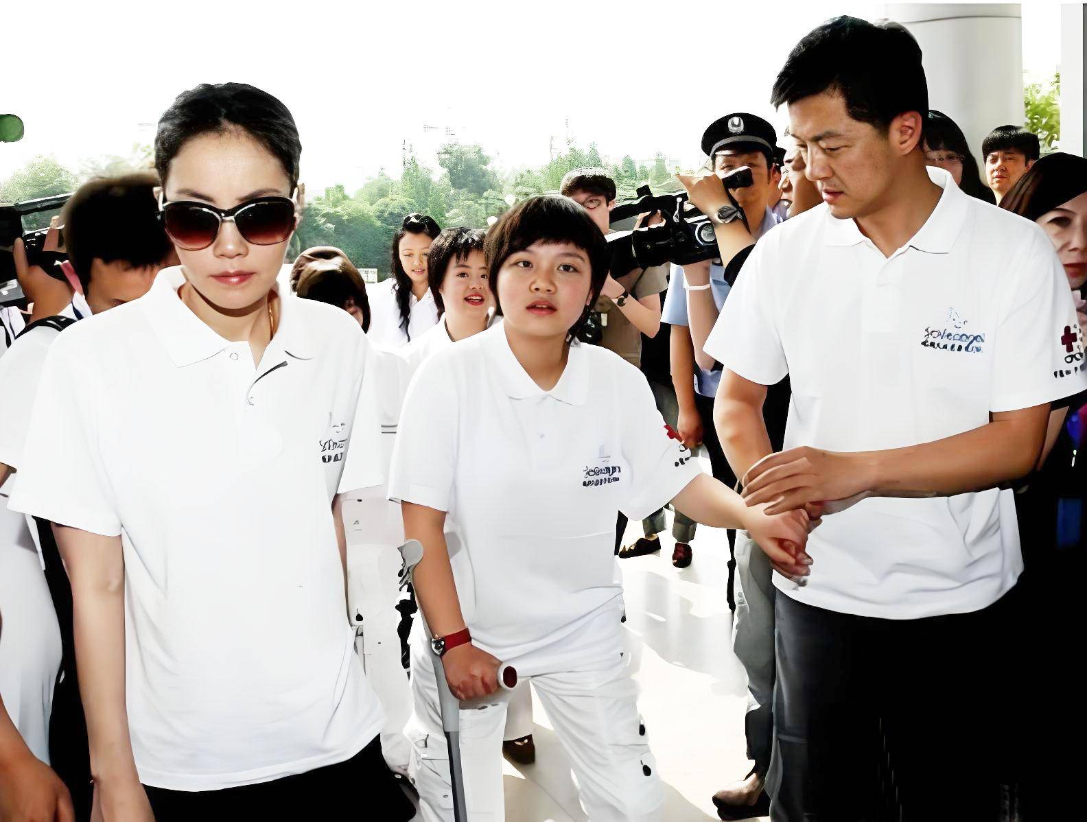 于是李亚鹏、王菲、李厚霖,及嫣然天使基金的工作人员,一同护送朱春燕、蒲虹学(由李厚霖助养),回到北川县绵阳长虹厂的北川中学临时校区。