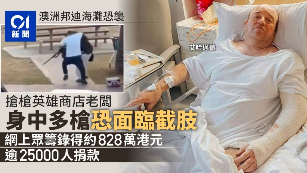 澳洲悉尼邦迪海滩(Bondi Beach)12月14日发生严重枪击事件,造成16人死亡、40多人受伤。据《新西兰先驱报》(NZ Herald)16日报道,因英勇夺下枪手武器而身受枪伤的商店老板艾哈迈德(Ahmed al Ahmed)恐面临截肢的风险。与此同时,为支持他和他的家人而发起的公众筹款活动已超过160万澳元(约828万港元)。