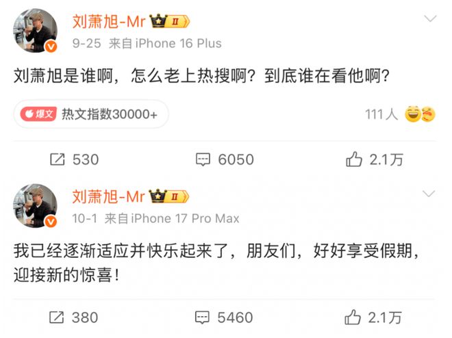 劉蕭旭興奮地發了微博,從爆紅的驚喜,到慢慢適應。