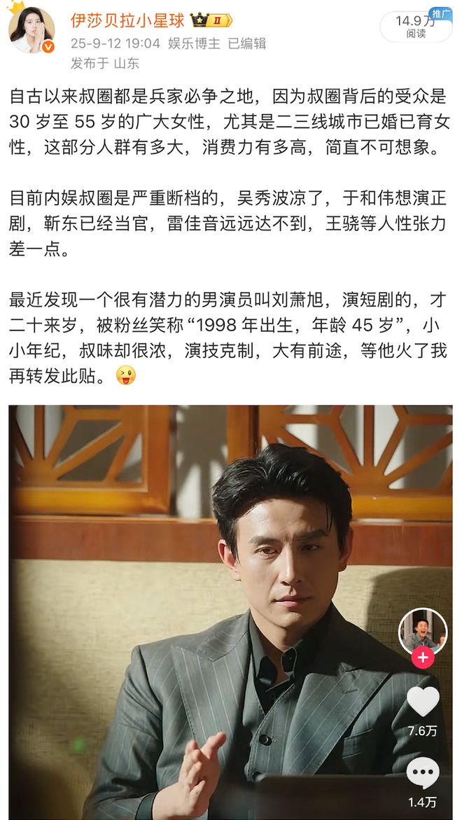 說完郭宇欣,再說劉蕭旭,他還是繼續深耕在短劇領域,坊間人氣高企不下。