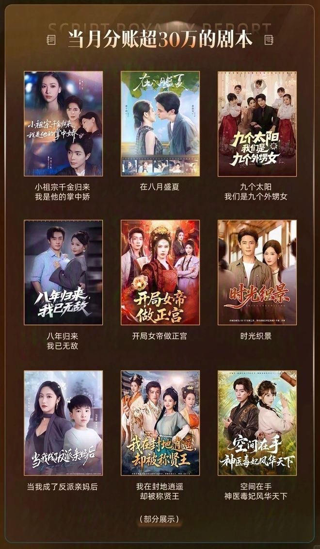 平台不斷給出分賬戰報,壹月壹更新,告訴人們,工作室拿到了千萬,編劇拿到了百萬,這些數字讓人耳紅眼跳: