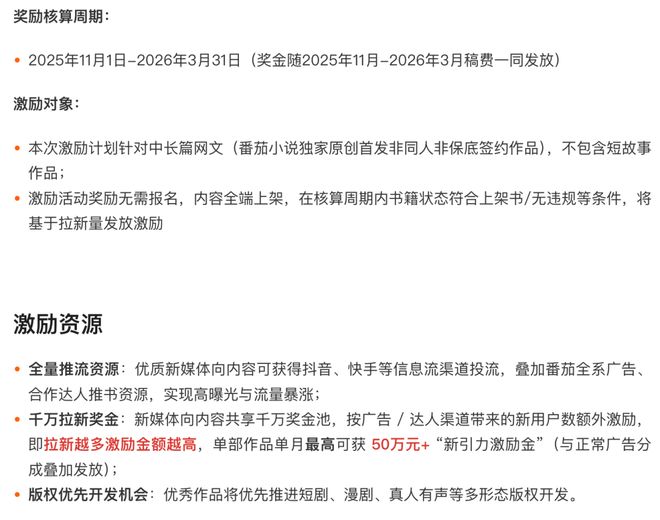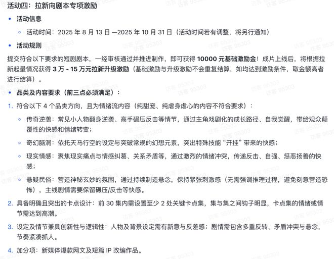 有時候,平台也會給出激勵政策,符合方向的劇本會獲得額外獎勵:
