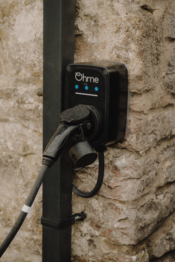 他家外墙上装有一个充电桩。 OWEN RICHARDS FOR THE NEW YORK TIMES