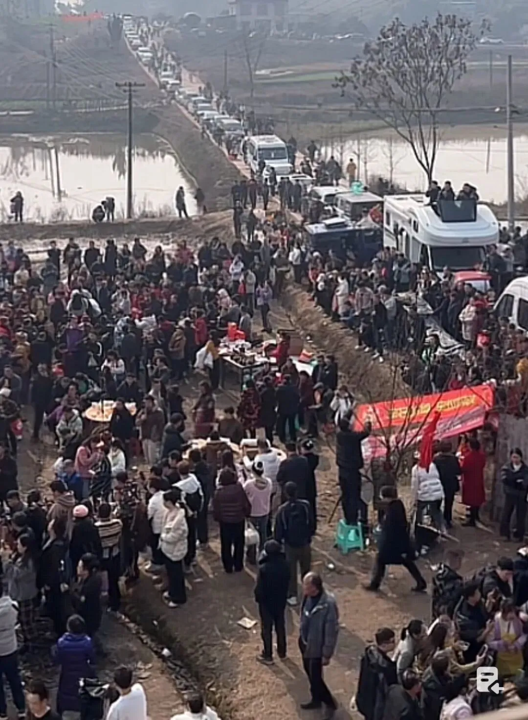 村道成了临时停车场,村干带着人指挥交通:“往左靠,车别堵路!”派出所民警也在人群里穿梭维持秩序。当地文旅部门反应飞快,“合川文旅”的账号一天连发9条视频,直播这场“民间盛会”,还给来看热闹的网友发当地景点“钓鱼城”的门票。