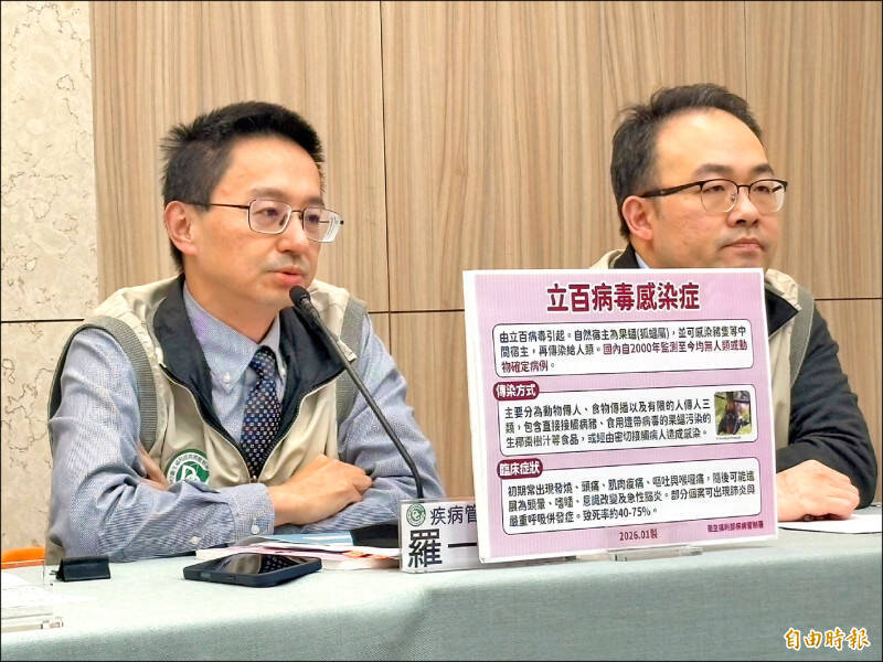 疾管署强调,立百病毒属高致死率人畜共通传染病,目前全球仍以支持性治疗与实验性疗法为主,呼吁民众勿轻信未经证实的网络信息,相关疫情与医疗信息,仍应以官方与专业单位发布为准。