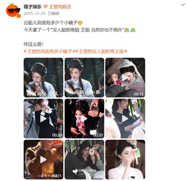 试想一下,这么大个美女,正拍着戏呢,结果随时随地都能反手掏出一面抽象小镜子,还是常看常新、重复度极低的那种,冷不丁被萌一下也是人之常情吧。