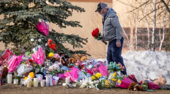 案发后,那棵树下堆满了鲜花、蜡烛、泰迪熊和孩子们的照片。夜晚,每家门前都点着蜡烛。当地杂货店摆出了免费咖啡和饼干。图书馆全天开放。