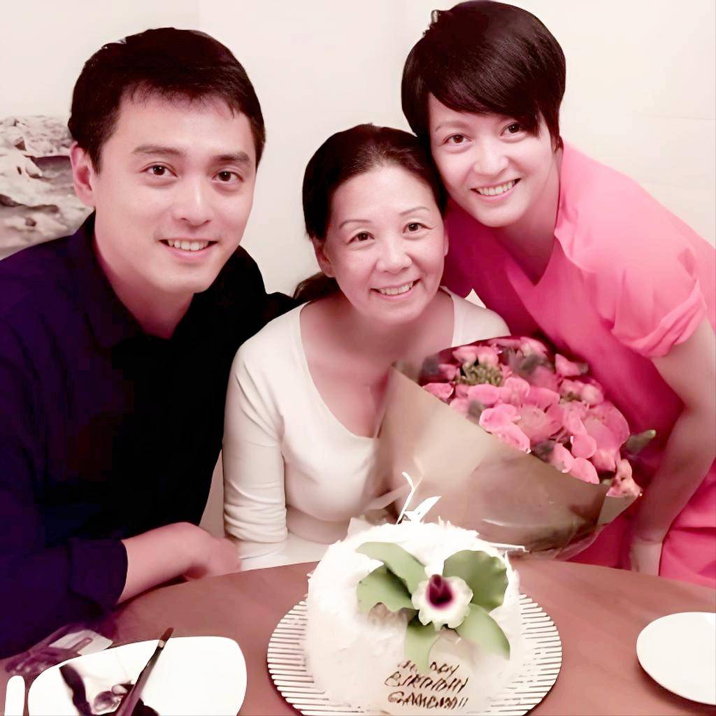 梁咏琪与双胞胎弟弟为妈妈庆生