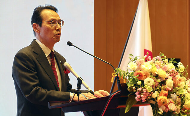 日本驻中国大使馆27日晚举办了祝贺天皇生日的招待会。驻华大使金杉宪治致辞说“日中关系迄今多次经历寒冬,但破冰之日必然来临”,强调了两国间持续沟通的重要性。