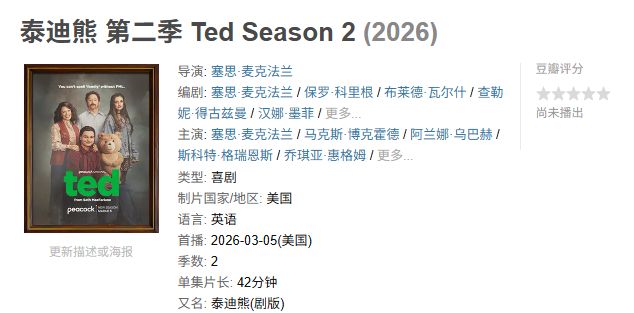 塞思·麦克法兰倾情打造,那只无节操的贱萌泰迪熊带着它的黄暴笑料原汁原味回归。