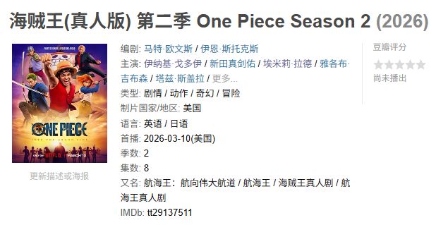 当初第一季完全不抱期待,结果看过之后发现还可以,如今第二季也来了。海贼迷也可以继续追起来了。