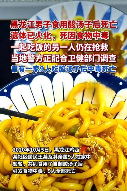 之前黑龙江就发生过一起惨剧,一家人 9 口聚餐吃酸汤子,最终 8 人中毒不治身亡,就因为一碗发酵的面条,一整个家都散了。
