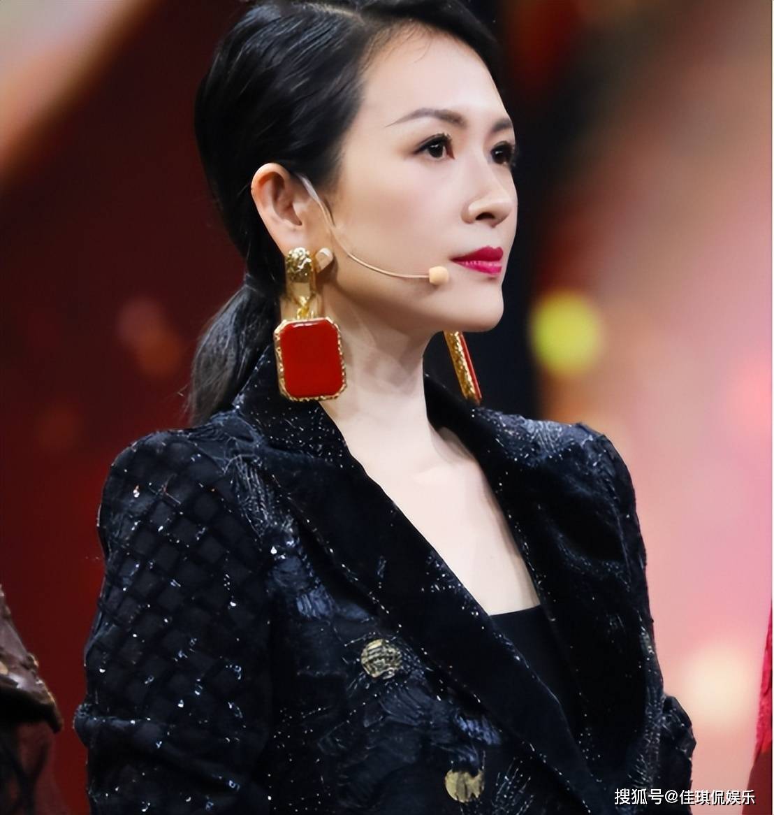 一袭大红色长裙的章子怡,在众星中显得格外扎眼;