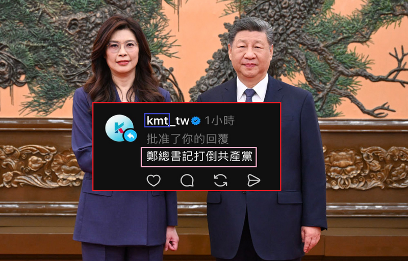 平时实施严格网络文字管控的国民党Threads账号,日前突然批准网友吐槽郑丽文、与国民党亲共立场不符的留言,引发网友议论。 (图撷取自@kmt_tw Threads、美联社资料照,本报合成)