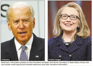 英国媒体3月12日惊爆秘闻包括前国务卿希拉里・克林顿、副总统拜登、流行歌后碧昂斯在内的13位美国政坛要人、好莱坞巨星以及社交名流不幸遭遇“黑客惊魂”!