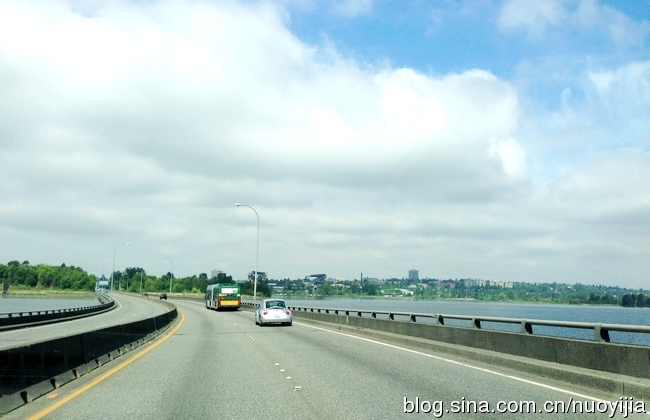 在西雅图的第二天,我们带孩子们去了位于西雅图中心的太平洋科技中心,其实就是科技馆。大清早从酒店出发,都都又背上她那条心爱的蛇儿上路了。小妞一路不辞辛苦的把蛇挂在脖子上,我看着都热 ,真是执着的孩子。沿途欣赏着华盛顿湖的风光,当天的天气真好,感觉西雅图上空的飘云和温哥华真的两样儿——