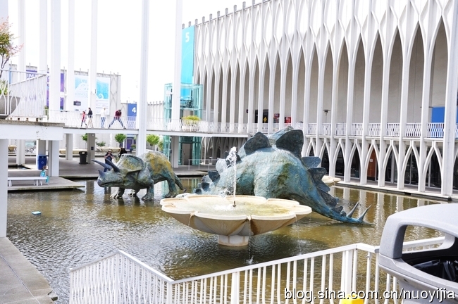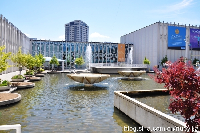 科技中心就坐落于西雅图的市中心,里西雅图的电视塔很近。门口的售票处不起眼,但当我们一进入其中央广场,就被眼前建筑的独特所吸引了,有点和外界隔离的 感觉,于展览的喧嚣和拥挤之外,淡然宁静,非常震撼人心中中央水池里的恐龙雕塑一下子就把孩子们的探索欲掀起来了。赶紧让老公给普及建筑知识,原来这是美 国著名的世贸双塔的设计者——雅马萨奇的作品之一,1962年正式向公众开放。科技中心真的不同于想象中的科技馆的样子,光凭借着眼前的这特色的广场设 计,就能感觉出大师使观景与科技展品精巧结合的自然紧密——