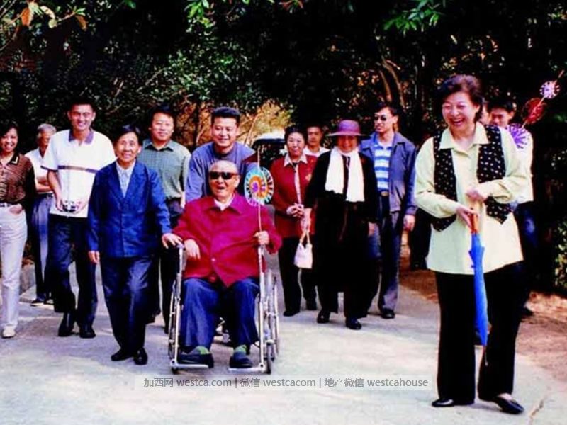 2002年2月,习仲勋(坐轮椅者)在深圳市参观。这是他在深圳的最后一次公开活动,不久即赴北京治病。