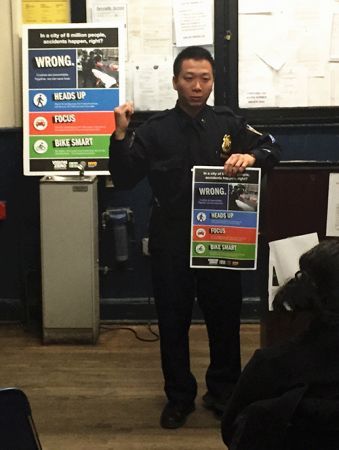 市警五分局25日晚举行警民会议,五分局局长伯告时、曼哈顿高速公路局长Yaeger和警佐叶家杰在会议中特别以去年248人在交通事故中死亡的惊人数字,呼吁民众注意交通安全。