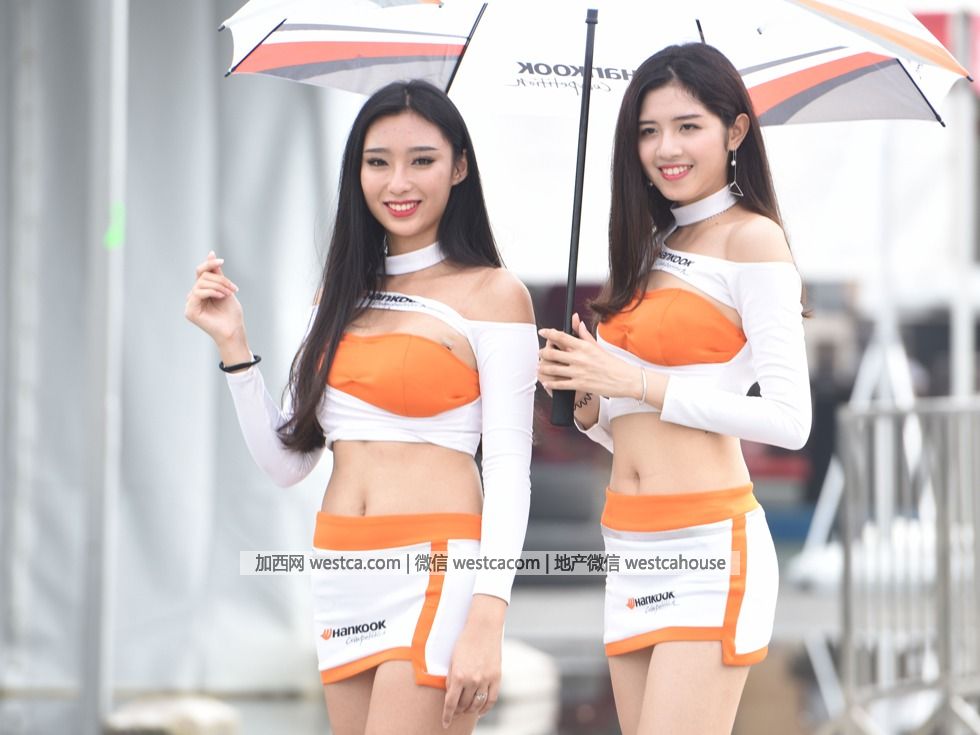 中国房车锦标赛肇庆站,赛车女郎高挑亮眼,波涛汹涌颜值高。(图源:VCG)