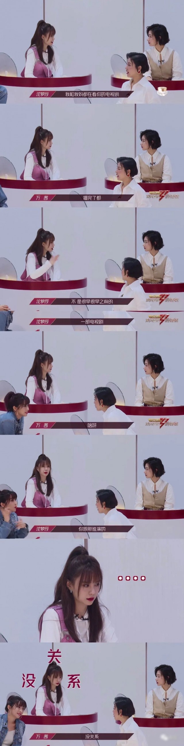 沈梦辰主动找到万茜说自己看过她主演的好多剧,结果竟然一个剧名也想不起来时,满屏的尴尬溢于言表…