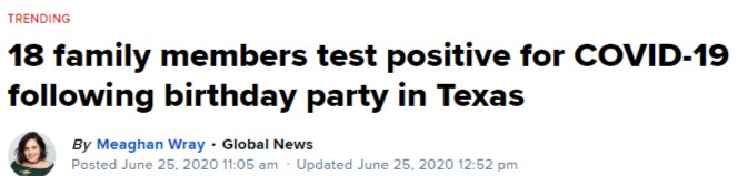 据介绍,5月30日,这个位于北德克萨斯州的家庭举行了一个规模中等的生日Party,虽然聚会只持续了几个小时,不过全家18名家庭成员全部检测为新冠病毒阳性。