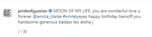 不仅如此,Jason在去年八月份给龙妈Emilia Clarke庆生的帖子,沦陷了......