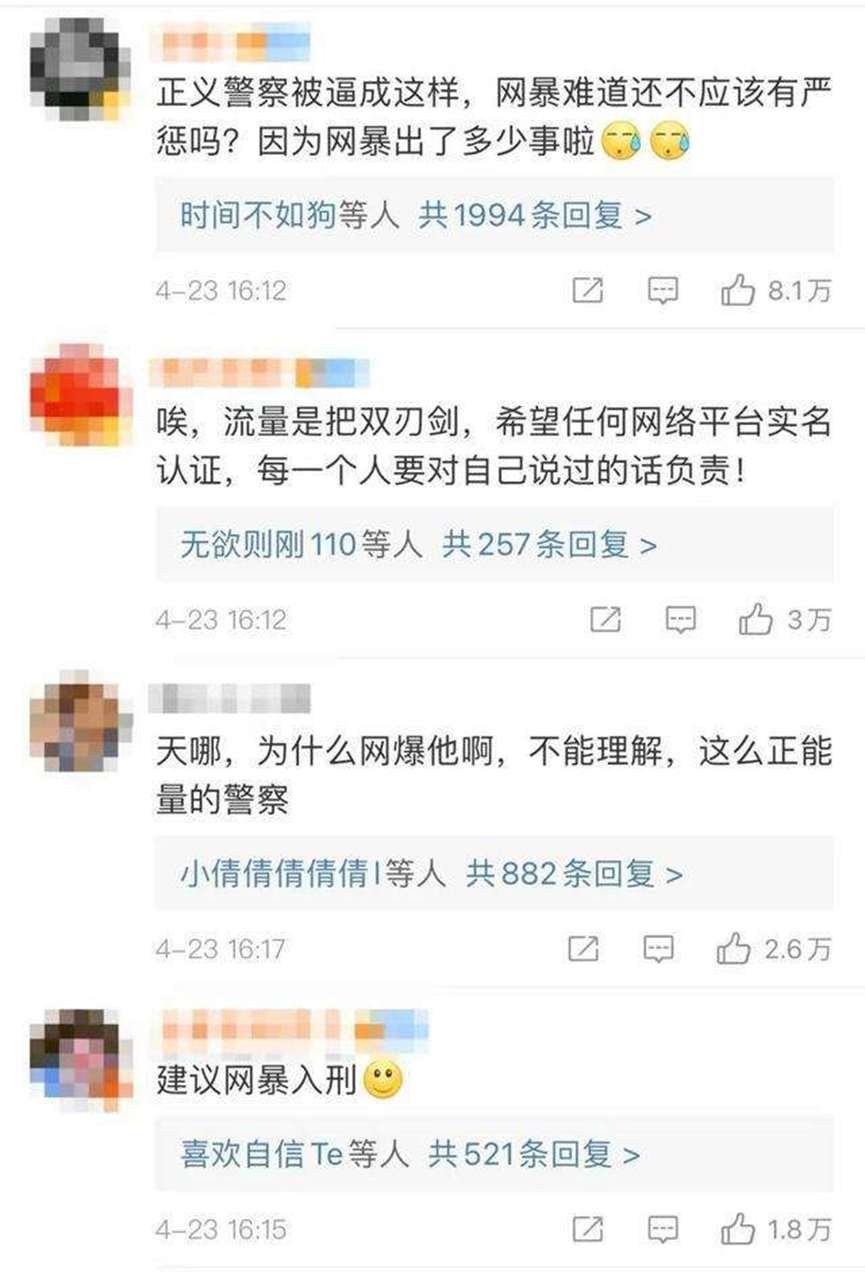 也有一部分粉丝从始至终都在支持着陈警官,觉得他辞职的做法很不应该,也觉得大众不应该站在道德的制高点去批评他。