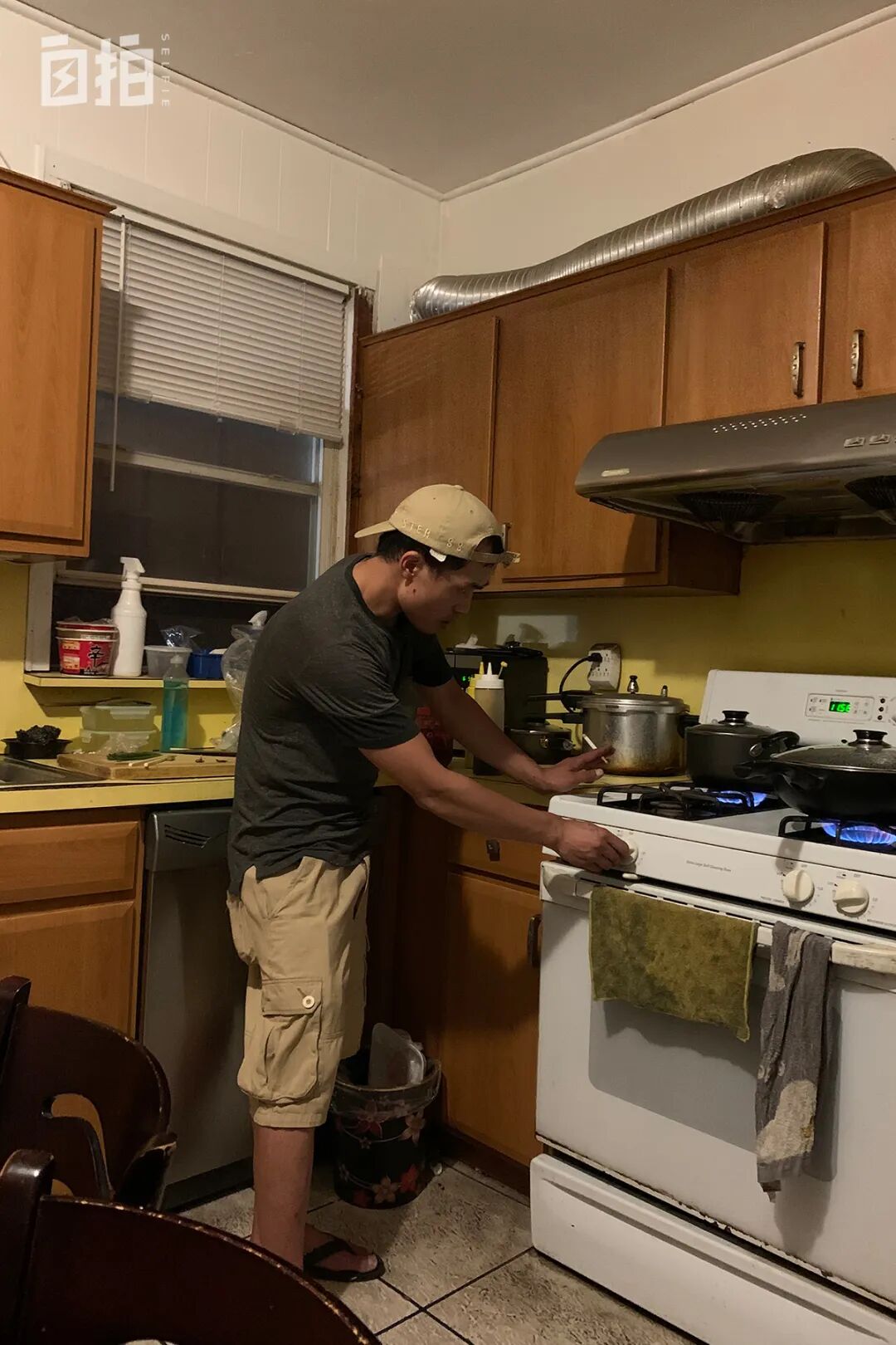 这是我的邻居在共用厨房做饭。挣钱不容易,大家都是回来很晚了还自己煮饭吃。