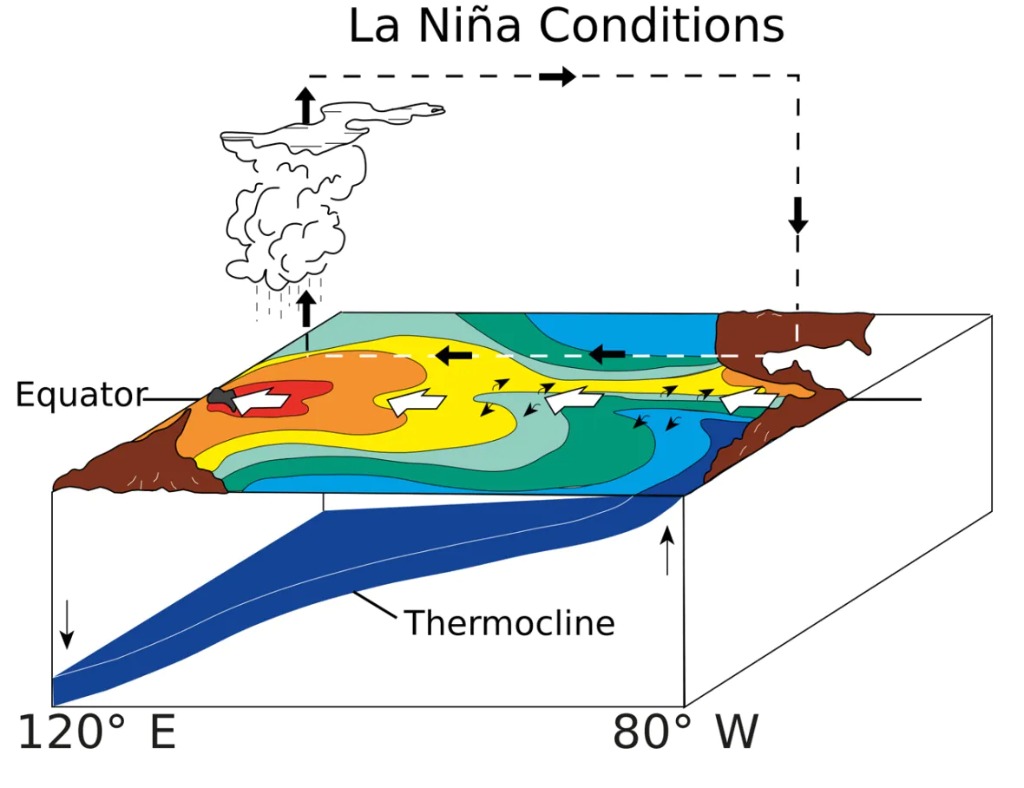 拉尼娜意味着东太平洋海面上的海水正在变冷,和厄尔尼诺现象相反,在厄尔尼诺现象中水温有变暖的趋势。