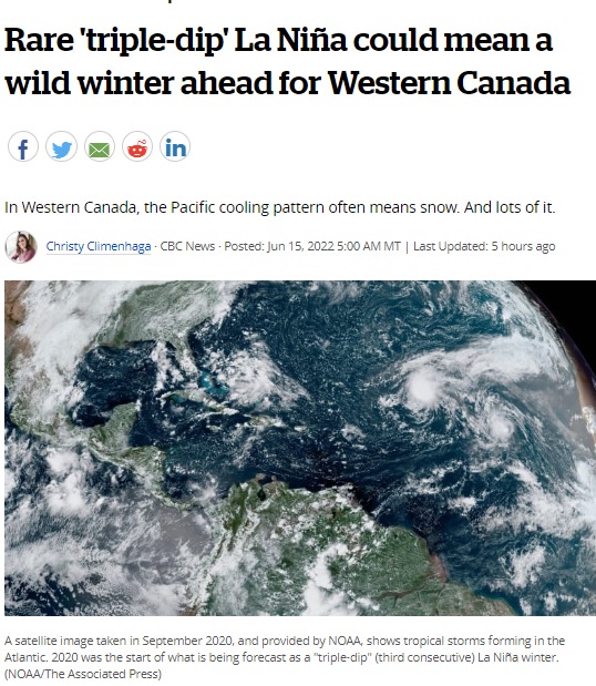 目前,加拿大现在正处于拉尼娜的状况中,自2020年以来一直是拉尼娜冬季。