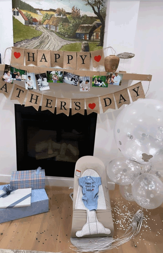 詹妮弗还展示了为庆祝父亲节到来而装饰的房间,而从壁炉上悬挂的照片看,这是以Leila的名义举办的,主角是纳耶尔。