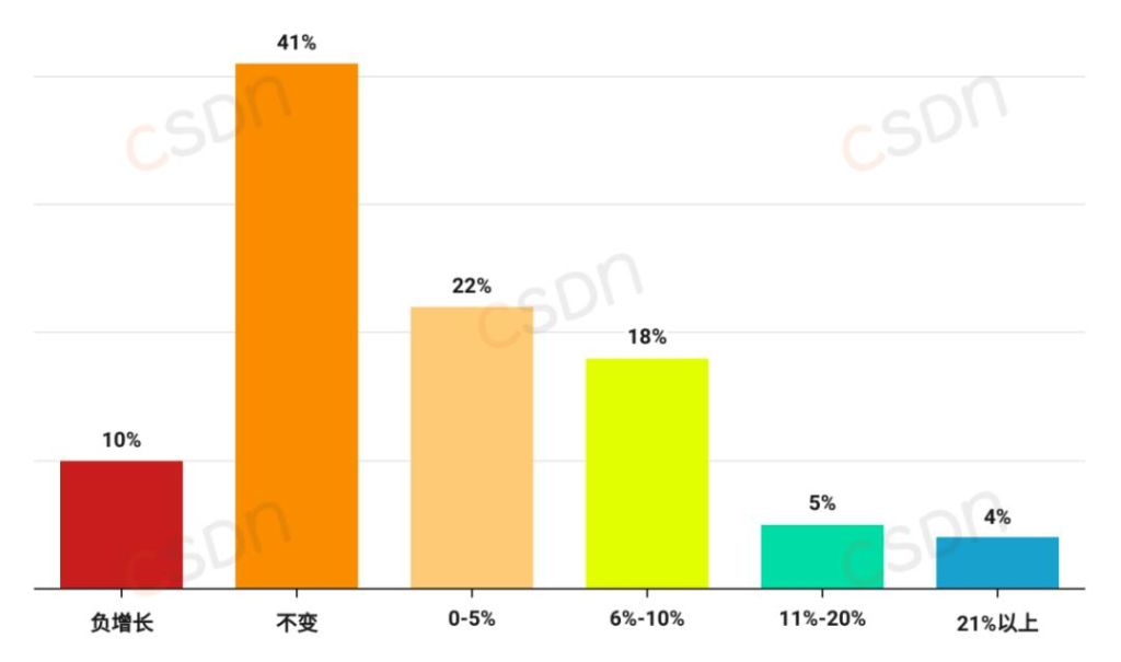 針對薪資待遇不滿意這壹問題,有 41% 的開發者透露,過去壹年裡工資沒有任何變化,還有 10% 的開發者出現了負增長。49% 的開發者表示過去壹年工資有所上漲,而 2023 年該數據為 51%,2022 年該數據為 62%。