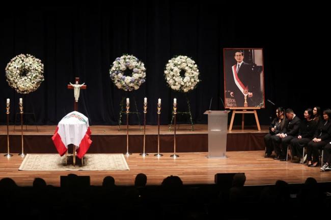 當地時間9月14日,秘魯前總統阿爾韋托·藤森(Alberto Fujimori)的葬禮,在秘魯利馬的國家大劇院舉行。