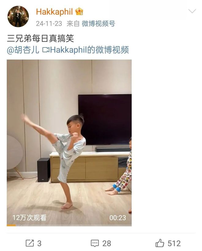 胡杏儿工作太忙,他就带娃。