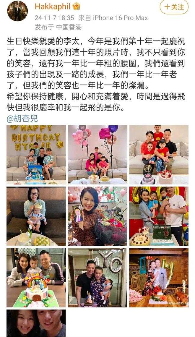 胡杏儿生日,他拿出十张图,是妻子历年的生日照。
