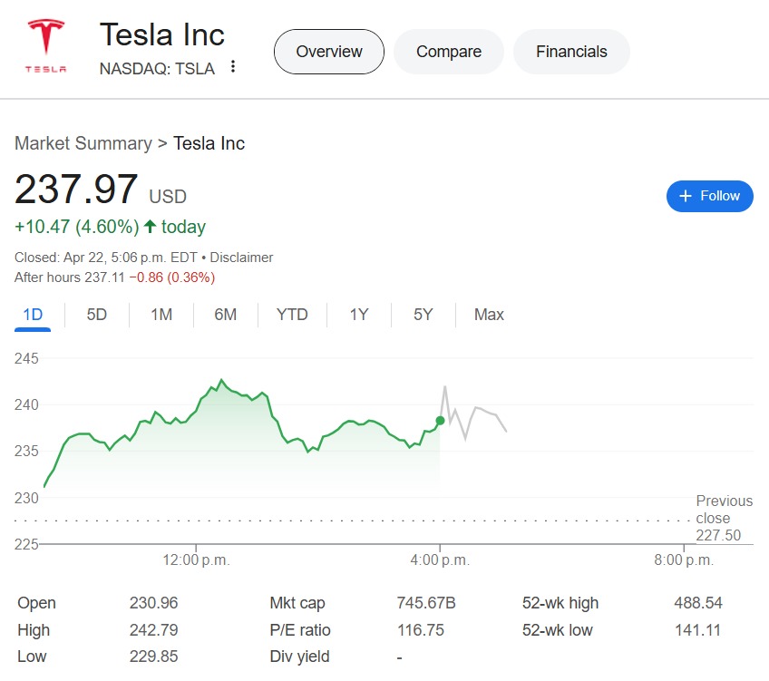 这家汽车制造商的第一季度利润缩水了 71%,电动汽车巨头的利润为 4.09 亿美元,而去年同期为 14 亿美元。