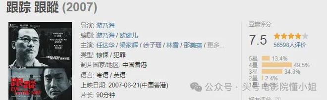 《捕風追影》的故事,其實就是來自杜琪峰“銀河映像”旗下2007年上映的電影《跟蹤》,杜琪峰是《跟蹤》的制片人,游乃海是《跟蹤》的導演兼編劇。