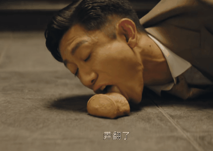 比如被綁住手腳,趴在地上用嘴叼饅頭的橋段,丁壹用力抬起下巴張嘴咬饅頭反倒推的更遠,只能再用力挪著身體向前,脖子上的青筋緊繃,張壹山演的太賣力了。
