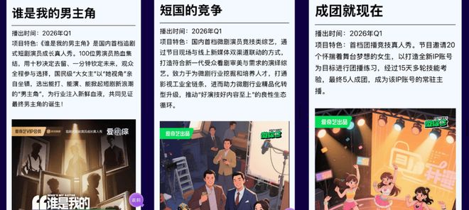 另一类创意项目可统统归属于“短国101系”综艺。《谁是我的男主角》《短国的竞争》《成团就现在》是这份片单的三大短剧+节目,尤其《谁是我的男主角》被盖章为“国内首档追剧式短剧演员成长真人秀”,号称会请到100位短国男演员同场竞技,用十秒去留、一分钟定角、国民级大女主挑CP的筛选逻辑把造星赛制和短剧工业链路对接,创意满分但顺利执行落地的难度不小。