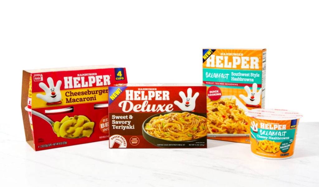 “汉堡助手”(Hamburger Helper),1971 年推出的盒装芝士意面套装,今年在美国的销量比去年上涨了 14.5%。生产商 Eagle Foods 在 9 月的新闻稿中解释说,这与当年产品上市的背景如出一辙:高通胀、牛肉价格上涨、失业率担忧、多收入家庭压力倍增。