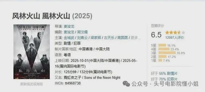 目前,豆瓣已经开分的国庆档电影除了《风林火山》,还有几部: