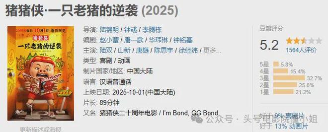 《猪猪侠·一只老猪的逆袭》开分5.2分,分数垫底。