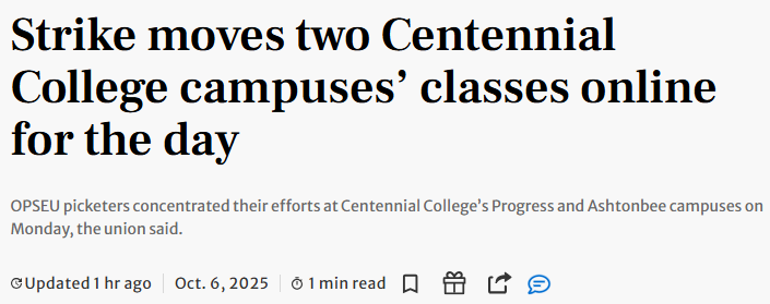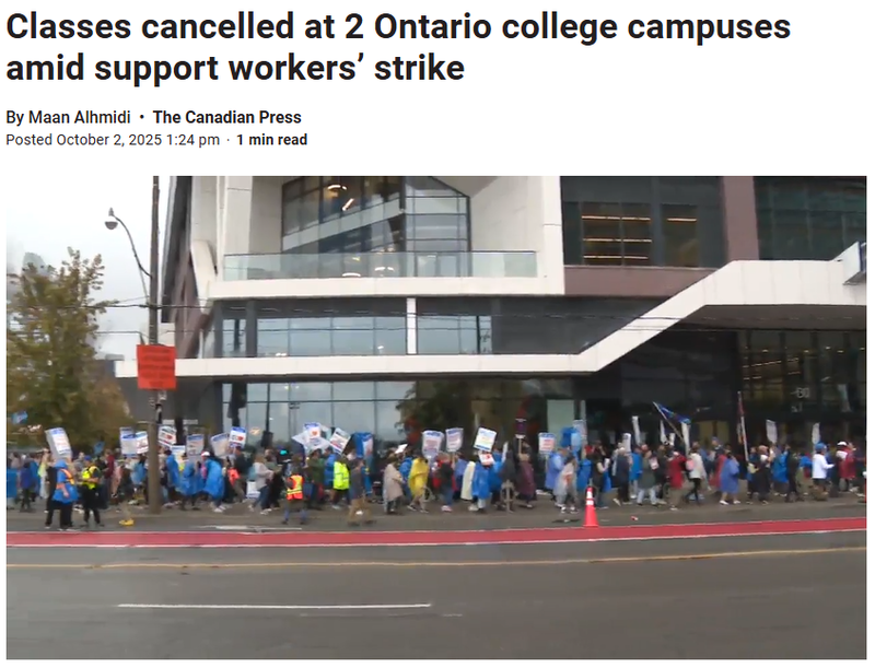 上周四(10月2日),安省多所学院受罢工影响,不得不取消部分课程和校内活动。包括: